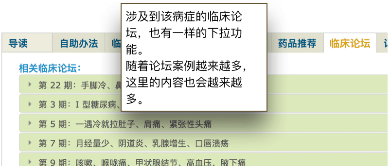 • 临床论坛:我们选择了一些案例,从个案中论述其辨证方法。我们也邀请了对中医有兴趣、有造诣的用户参与讨论。临床论坛是一个相互学习的地方。